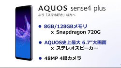 シャープは、同社スタンダードシリーズのスマートフォン「AQUOS sense4」「AQUOS sense4 plus」を2020年秋冬モデルとして商品化すると発表した。