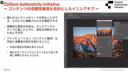 また、デジタル時代において誰がそのコンテンツを制作したのか、というデジタル署名の重要性が高まっていることを受け、NYタイムズ、twitter社とともにコンテンツ認証イニシアティブを開始。アトリビューションパネルから、誰が加工したか、どんな編集ソフトを使ったかが確認できるようになるという。