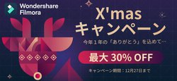 株式会社ワンダーシェアーソフトウェアは、映像編集ソフト「Wondershare Filmora」について、最大30%オフとなるクリスマスキャンペーンを実施している。キャンペーン期間は12月27日(日)まで。