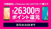 楽天モバイル、最大25,000円分ポイント還元キャンペーン。スマホ購入と契約で