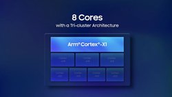 Exynos 2100は5nmプロセスで製造され、8コアのCPUを搭載。ARMの「Cortex-X1」コア1基、「Cortex-A78」コア3基、省電力性能の高い「Cortex-A55」コア4基で構成され、旧モデルより30%以上パフォーマンスを向上しているという。
