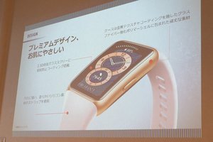 着信やメッセージの確認、天気情報、音楽再生コントロールが可能。EMUI 8.1以降のスマートフォンであればリモートシャッター機能も利用できる。外形寸法は25.4W×43H×10.99Dmm、質量は約18g。