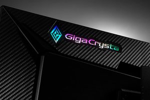本体は段差がないフレームレスパネルを採用。背面の「GigaCrysta」ロゴはイルミネーション機能に対応する。イルミネーションは、ロゴの明るさが徐々に変化する「ブレス」など、5パターンを搭載する。