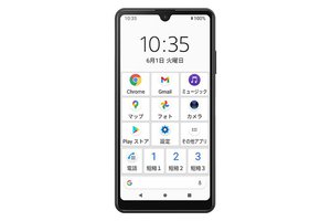 初めてスマートフォンを使用する年配の方向けに「かんたんホーム」を搭載。大きな文字で直感的に操作できるという。本体はIPX5/8の防水、IP6Xの防塵性能を備える。ディスプレイのカバーガラスには、高耐久なCorning「Gorilla Glass 6」を採用する。