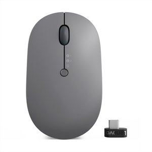Lenovo Go USB Type-C ワイヤレス マウスは、USB Type-Cレシーバーにより、スムーズな2.4GHzのワイヤレス接続を可能としたマウス。ブルーLEDセンサーによる精確なトラッキングを実現、左右どちらの手にもフィットするよう設計されている。