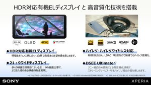 Xperia初のeSIMに対応する。nanoSIMとeSIMを使うことで、SIMを切り替えることなく、1台のスマートフォンで両方の電話番号の着信も可能だ。また、最大1TBまでのmicroSDカードも利用できる。
