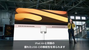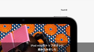 ほか、Apple Pencill(第2世代)による手書きに対応。指紋認証機能のTouch IDは、「iPad Air」のように上側面に移動した。また、スピーカーは横向きでのステレオ再生に対応する。