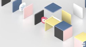 またページ内に掲載されている動画には、パステル調のピンク・ブルー・イエロー、ブラック、ホワイトといったカラフルなパネルが、アプリアイコンのようなものに組み合わさる様子が描かれている。
