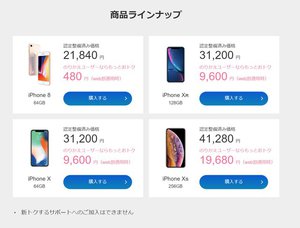 ・iPhone XS(256GB) 41,280円(web割適用時 19,680円)