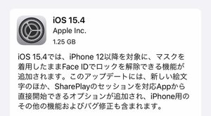 iOS 15.4では、マスクを着用したままFace IDを使用できるオプションが追加された。iPhone 12以降で使用できる。これまでもApple Watchと連動して認証解除する機能はあったが、iOS 15.4ではiPhone単体で使用可能になる。