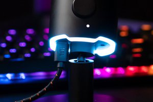 マイクの上部にはミュートのオン/オフや、長押しでRGBライティングのオン/オフ操作に対応するマルチファンクションボタンを装備。本体下部のRGBライトは動作に応じて色が変化し、設定状況を一目で確認できる仕様となっている。また底面には、USB端子のほか、ヘッドセットと接続可能な3.5mmジャックを搭載。自分の声をリアルタイムで聴くことができる「サイドトーン(側音)」機能に対応する。