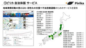 ピリカ自治体版では、地域ごとのごみ拾い活動の様子や成果を集約し、自治体の取り組みを発信できるWebページを提供している。ごみ拾いの実施状況を効率よく定量的に把握したり、清掃活動促進施策の効果測定にも寄与するという。