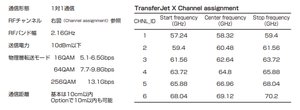 今回のTransferJet Xは、新たに60GHz帯を採用し、通信速度は256QAMの場合で13.1Gbpsとなる。通信距離は10cm以内。
