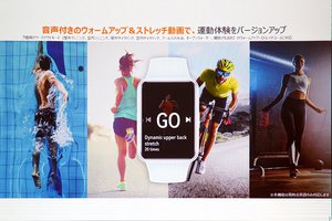 健康管理や運動記録機能も、引き続き備えている。本体には7種類のワークアウトモードに対して、それぞれに合わせた音声付きのウォームアップ&ストレッチ動画が搭載される。なお、本動画は現時点では音声は英語のみの対応となる。