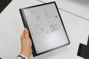 紙の印刷物であるかのような表示が特徴のE Ink(電子ペーパー)ディスプレイを採用したタブレット端末。反射式ディスプレイかつアンチグレア仕様のため、まぶしい太陽光下でもクッキリと表示内容を視認でき、また32段階の明るさ調節機能により夜間や暗所でも使用できる。