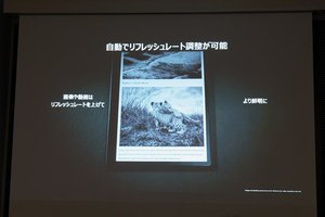 さらに、表示するコンテンツに応じて、自動または手動にてリフレッシュレートの変更が可能。例えば動きのあるコンテンツを表示する際はリフレッシュレートを上げることで、残像感を抑えて鮮明に表示させることができるとしている。