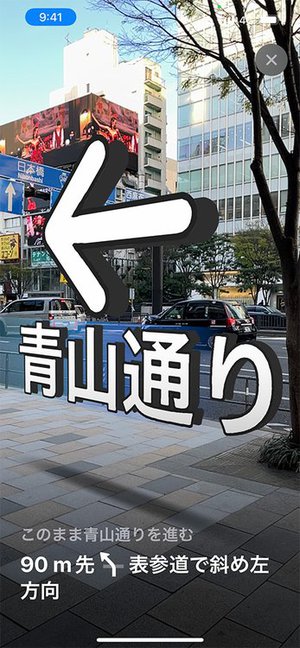 そのほか「ARウォーキング」機能にも注目したい。iPhoneを片手に街中を移動する際にとても便利な機能だ。iPhoneのカメラをかざした街並みに、交通要所となる通りの名前や目的地までのナビゲーションがAR表示される。この機能が、新たに東京・大阪・京都・名古屋・福岡・広島・横浜の各地域に対応した。