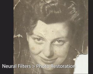 さらに、AIを活用した「ニューラルフィルター」も開発中としており、古い写真や色あせたデータ、欠けた情報などを復元しより精細な画像データにすることができるとしている。モノラル写真からカラー写真への復元なども可能になる。