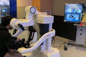 このシステムでは、遠隔地でアームを操作する側に向けて、患部を確認するためのヘッドマウントディスプレイ用映像だけでなく、手術室全体を写す非圧縮の8K映像データも同時に伝送。これにより、遠隔操作する側は、ヘッドマウントディスプレイで患部の状態を診ながら、別途ディスプレイに映しだされた全体の状況も確認出来るため「同じ部屋で手術を執り行っている」ような使用感を実現できたという。