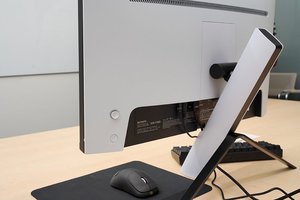 スタンドは3脚デザインを採用することで、デスクトップを広く使えるよう配慮。高さ/チルト調整に対応し、配線をスッキリとまとめておけるケーブルマネジメント構造も備えている。ほか、4KモデルM9との細かな違いとして、より小型のACアダプターが付属する。