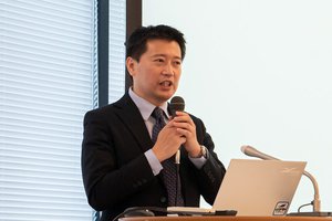 商品の説明に当たり、同社新規ビジネス・技術開発本部 モーション事業推進室室長・相見猛氏が登壇。本製品の開発背景やビジョンを語った。