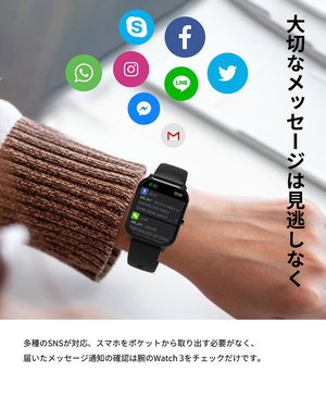 iOS/Android対応の専用アプリ「SOUNDPEATS SPORTS」で着せ替え可能な文字盤デザインは、Watch 2の43種から200種以上へと大幅に増加。同アプリとの連携により、1日の歩数や現在の心拍数、目標到達状況などのヘルスケア情報も確認できる。電話着信時にWatch 3を振動させる着信通知機能、受信したメッセージの一部をリアルタイムに表示するSNS通知機能など、スマートフォンとの連携に関する設定も管理できる。