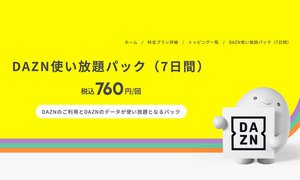 「DAZN使い放題パック(7日間)」では、購入完了から7日間にわたってDAZN、およびDAZN利用中のデータ通信が使いたい放題となる。
