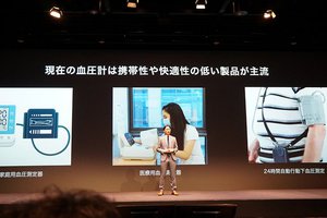 HUAWEI WATCH Dの開発背景には、日本の血圧患者事情があると説明。いま日本では約4千万人の高血圧患者がいるという。「その多くが自覚しないまま生活している」と現状の問題点を挙げ、血圧測定を誰でも手軽に行えるHUAWEI WATCH Dを通じて、「高血圧であることを早く認知し、心不全といった重大な病気の予兆を知ることができる」とアピールした。