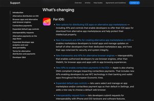 iOS 17.4の提供後、EU域内ではデベロッパが代替アプリマーケットからiPhone向けのアプリを提供できるようになる。ユーザーはiPhoneの設定でアプリデベロッパを承認した後、外部の代替アプリマーケットが運営するウェブサイトからマーケットプレイスアプリをインストールする。