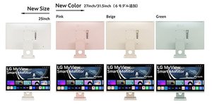 今年2月にリブランデイングされたwebOS搭載液晶モニター“LG MyView Smart Monitor”シリーズに、新色「Pink」「Beige」「Green」の全3色を追加。各色とも31.5型、27型の2サイズを展開し、カラーバリエーションは既存色のWhiteを含めた全4カラーのラインナップとなる。