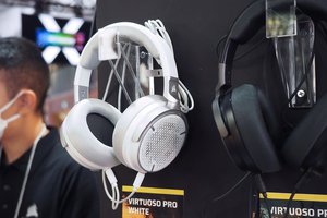 そのほか、ヘッドホンは有線モデル「VIRTUOSO PRO」や無線モデル「HS80 MAX WIRELESS」を用意。Elgato(エルガト)ブランドのショートカットキーボード/マイク/カメラ/キャプチャーユニット/LED照明などを体験できる配信スペースのイメージ展示も行われている。