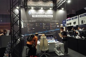 ホール9のアイ・オー・データ機器ブースでは、2024年10月で10周年を迎えるゲーミングモニターシリーズ “GigaCrysta” の液晶モニターを展開。10周年記念モデル「LCD-GCQ271UD」の体験を中心に、新製品の参考出品や、シリーズの歴史を紹介するパネル展示などを行っている。