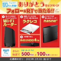 バッファローは、抽選で1名に「nasne(NS-N100)」と「PlayStation 5」のセットが当たる『「#nasne今すぐ欲しい」プレゼントキャンペーン』を、本日11月18日(月)から20日(水)23:59までの3日間限定で実施する。