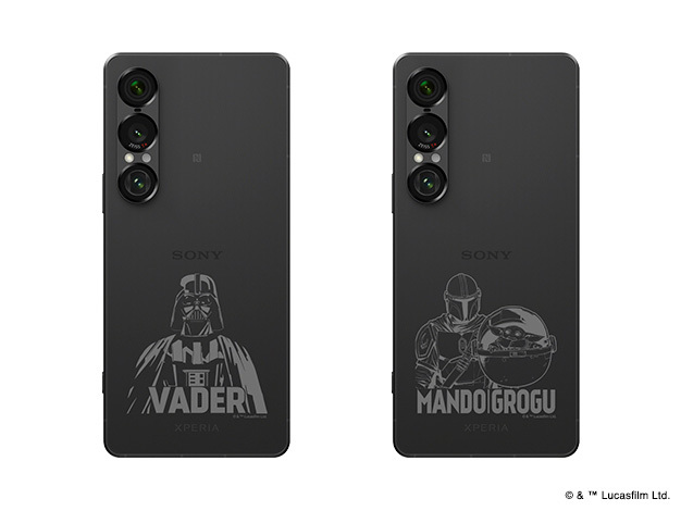 この度発売される『スター・ウォーズ』モデルでは、Xperia 1 VII SIMフリーモデル(12GB/256GB)のスレートブラックをベースに、背面パネルに「ダース・ベイダー」を刻印した「ダースベイダーモデル」と、Disney+で配信のドラマシリーズ『マンダロリアン』に登場する「マンダロリアン」と「グローグー」を刻印した「マンダロリアンモデル」の2ラインナップを展開する。