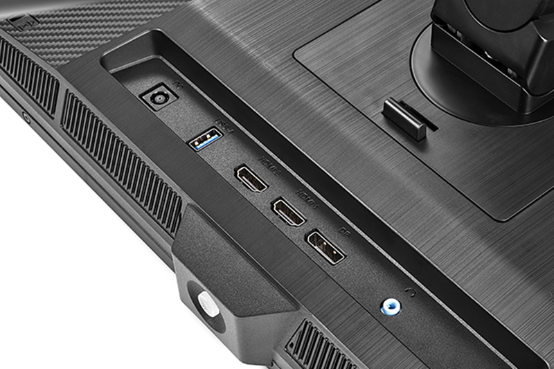 主な入出力端子は、HDMI(HDCP 2.3)×2基、DisplayPort(HDCP 2.2)×1基、3.5mmステレオミニ出力×1基を搭載。5W+5Wのスピーカーも内蔵する。