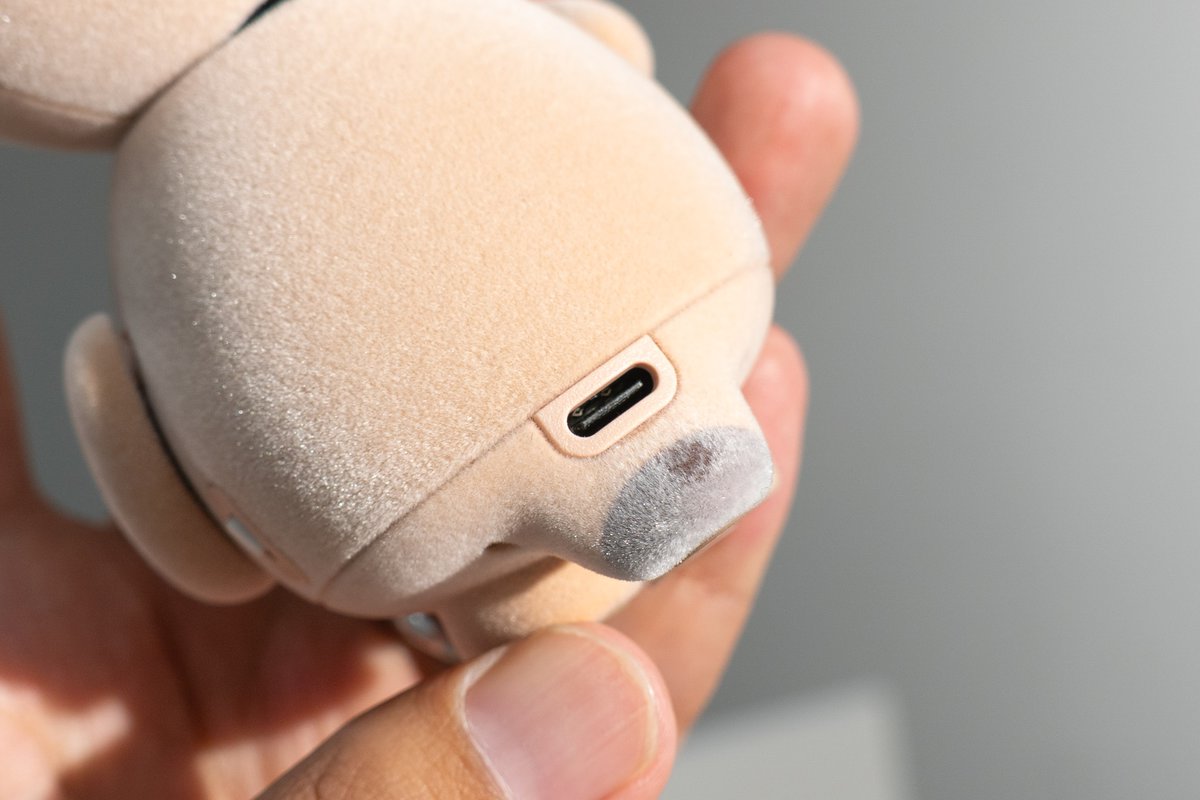 音声認識用のマイクは眼の部分、音声認識ボタンとスピーカーはお腹部分に内蔵。背中にUSB Type-C端子、側面に電源ボタンやマナーキーを装備している。