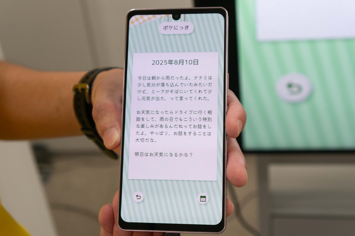また、音声会話が難しい環境でも、テキストベースでの会話に対応する。加えて、ユーザーとポケともの会話内容を基にして、自動で日記を作成する機能を備えている。