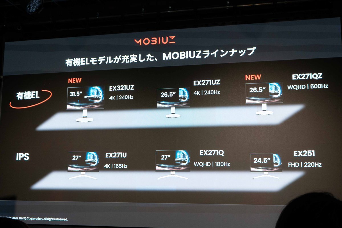 本イベントでは、2026年3月27日に発売されたMOBIUZゲーミングモニターの新製品「EX321UZ」「EX271QZ」をはじめ、昨年9月19日発表の「EX271UZ」によるゲームプレイを通じて、画質や表示速度などモニターの性能を実際に体験することができた。