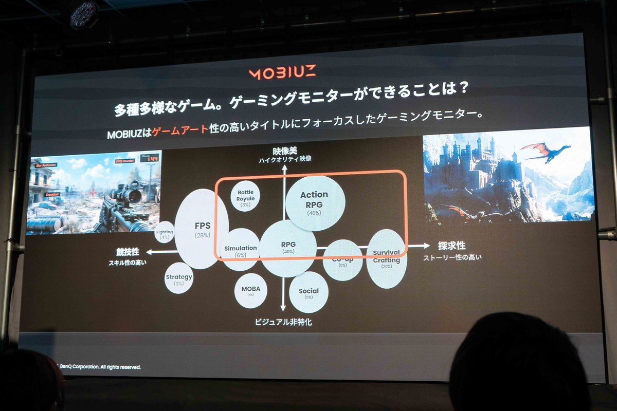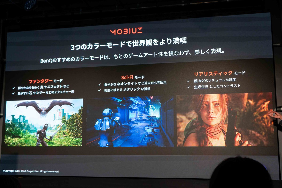 MOBIUZのゲーミングモニターは、映像美やストーリー性の高いゲームタイトル、つまりゲームアート性の高いタイトルにフォーカスしたゲーミングモニターとしている。