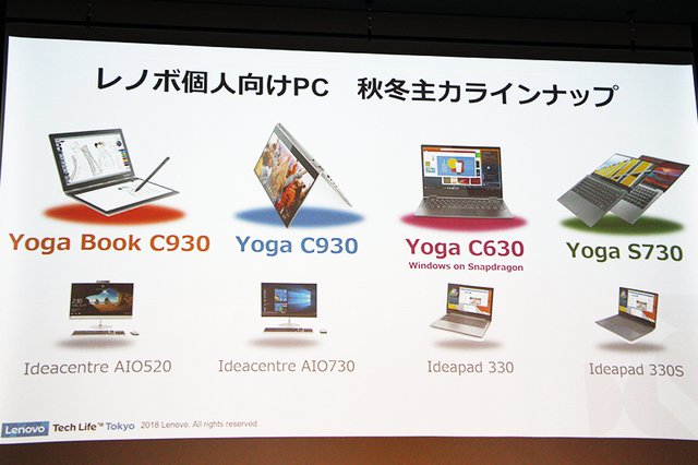 レノボ、25時間駆動のSnapdragon 850搭載機「Yoga C630」などモバイルPC 2018秋冬モデル発表