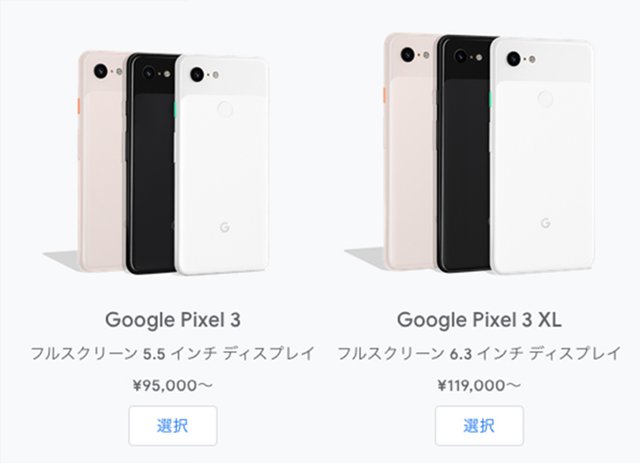 HOME > ニュース > モバイル/PCニュース ドコモ・ソフトバンクは10月19日午前10時から予約開始 「Google Pixel 3」SIMフリー版は9.5万円から。直販サイトで予約開始、ドコモ・ソフトバンクも取扱い 編集部:川田菜月 2018年10月10日 前の写真へ GoogleストアでSIMフリーモデルの予約を開始。Pixel 3が95,000円から、Pixel 3 XLが119,000円から 前の写真へ この写真の記事へ 関連リンク 「Pixel 3/Pixel 3 XL」直販サイト製品ページ ニュースリリース(docomo) ニュースリリース(ソフトバンク) Google