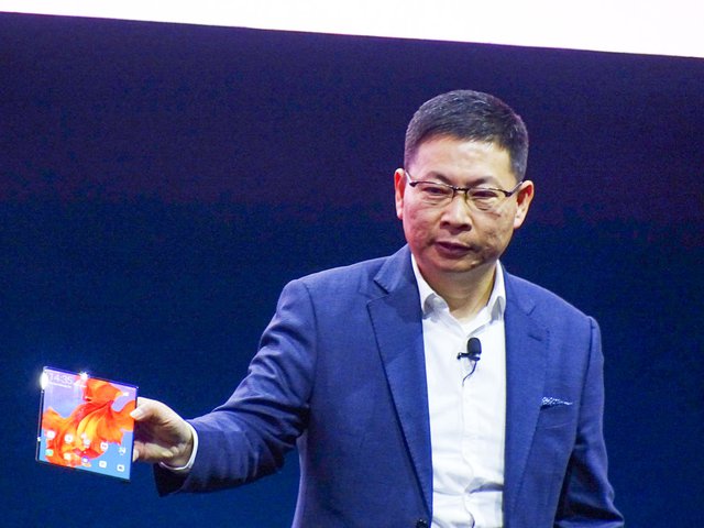 ファーウェイが単独開催したプレスカンファレンスで「Huawei Mate X」を発表。リチャード・ユー氏がプレゼンテーションの壇上に立った