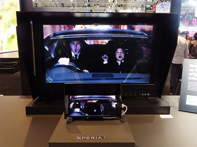 マスターモニターとXperia 1の画質を並べて比較デモを行っていた