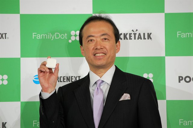 IoT製品第2弾「FamilyDot」を手にするソースネクスト(株)代表取締役社長・松田憲幸氏