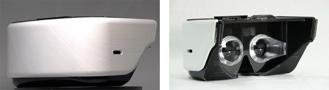 超広視野角VRゴーグル外観の前面(左)と後面(右)