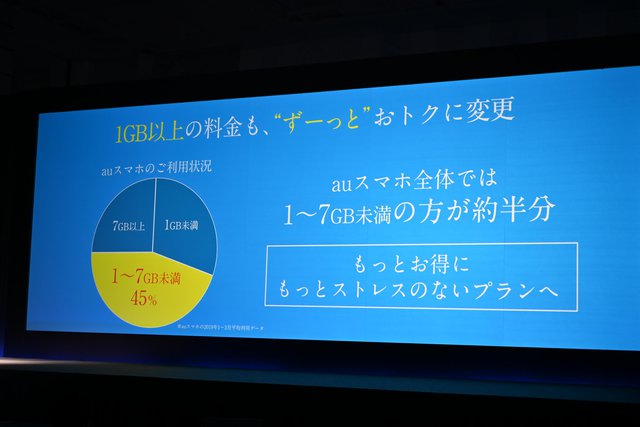 HOME > ニュース > モバイル/PCニュース 「新・値下げプラン」発表会が開催 au、データ容量上限なしの新料金プラン「データMAXプラン」。今夏以降に提供開始 編集部:平山洸太 2019年05月13日 次の写真へ 1-7GBのデータを利用するユーザーが全体の約半数に及ぶ 次の写真へ この写真の記事へ 関連リンク au 新料金プランについて au