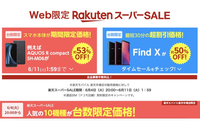 HOME > ニュース > モバイル/PCニュース スマートフォンなど10機種を割引 楽天モバイル、スーパーセールでスマホが特価に。ファーウェイ「P20」が約3.3万円など 編集部:平山洸太 2019年06月05日 この写真の記事へ 関連リンク セール会場はこちらから