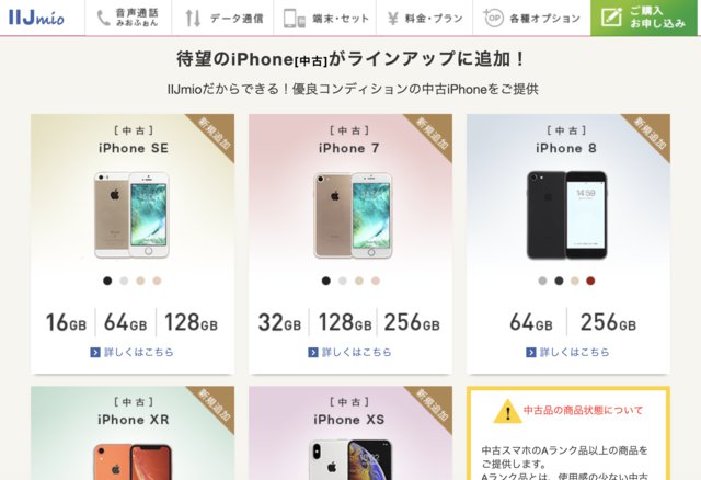 HOME > ニュース > モバイル/PCニュース SIMフリー端末 中古iPhoneをIIJmioサプライサービスが販売。XS/XR/SEなど5機種 編集部:平山洸太 2019年06月24日 中古iPhoneを7月4日から販売 この写真の記事へ 関連リンク 本件のニュースリリース IIJ