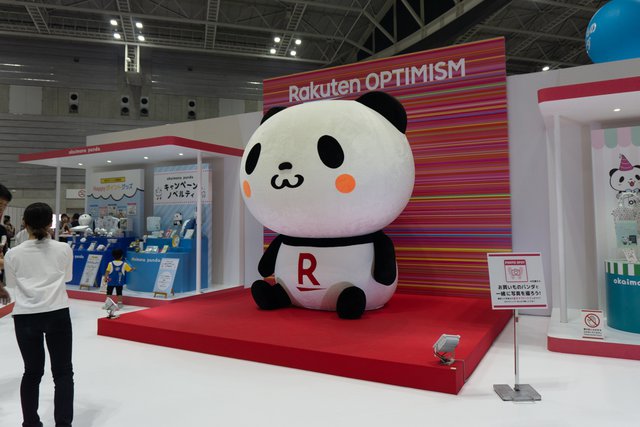 お買い物パンダの巨大ぬいぐるみ。家族連れも多く見られた