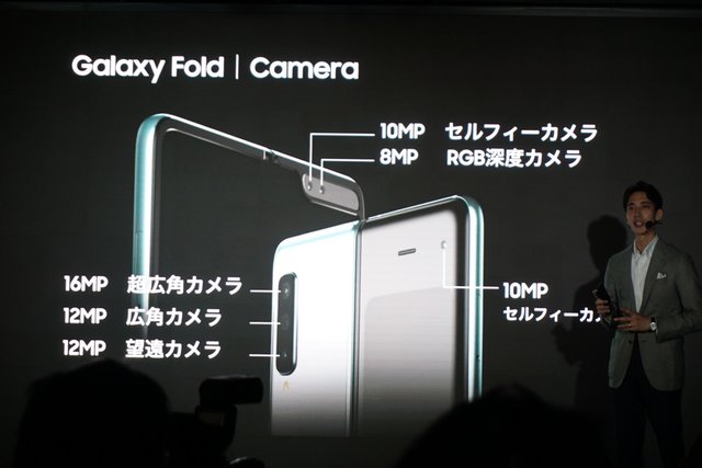 HOME > ニュース > モバイル/PCニュース KDDIから発売 サムスン、折りたたみスマホ「Galaxy Fold」日本初披露。「Galaxy Note10+」も 編集部:平山洸太 2019年10月10日 前の写真へ 次の写真へ カメラは6基搭載 前の写真へ 次の写真へ この写真の記事へ 関連リンク 「Galaxy Fold」詳細 「Galaxy Note10+」詳細